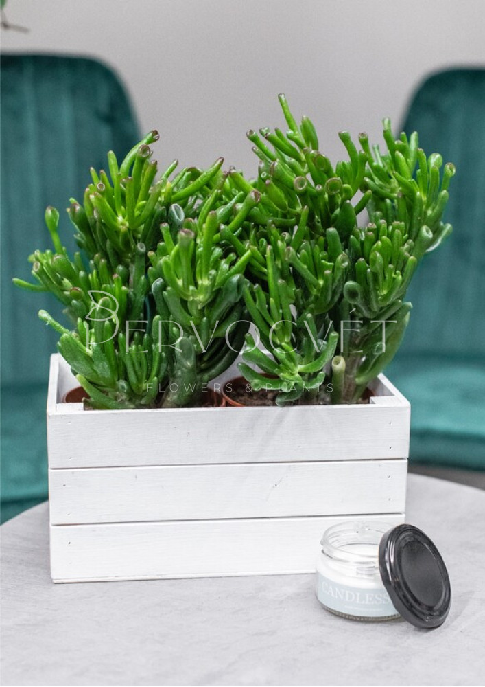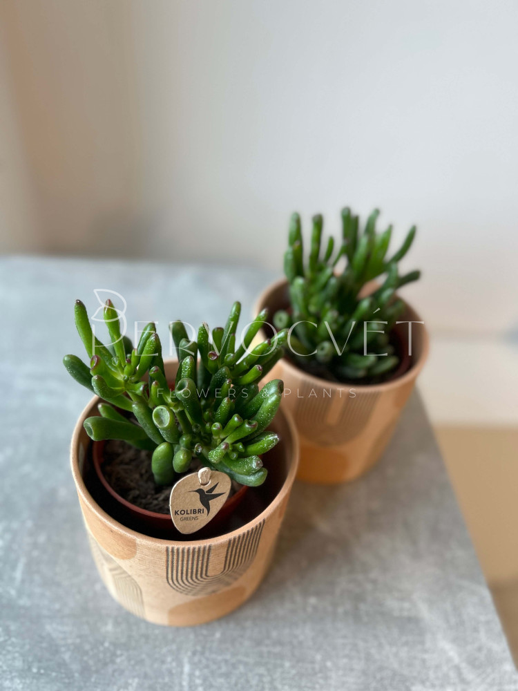 Крассула Хоббит представлена селекционерами в середине прошлого столетия, когда вышло знаменитое произведение Джона Толкина "Властелин колец", в честь героев которого растение и получило название. Крассула относится к семейству Толстянковых. При должном уходе цветет, но и на протяжении всего года имеет интересный декоративный вид, благодаря причудливым листьям трубчатой формы с красноватым отливом.