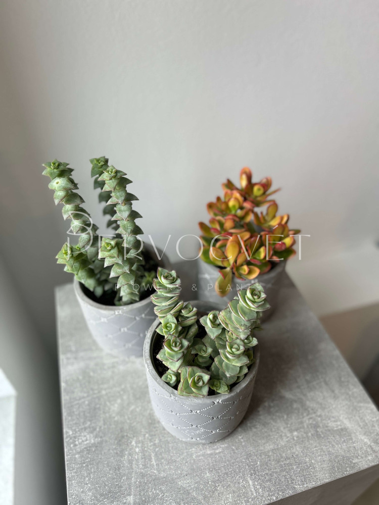 Крассула (толстянка) - представитель семейства Толстянковые, которое включает более 300 видов. Именно крассулы во взрослом состоянии известны всем как "денежные деревья". В домашних условиях, при правильном уходе, могут достигать в высоту 70см, но их можно содержать и как компактное растение. Охотно соседствуют в одном горшке как с представителями своего семейства, так и с кактусами.