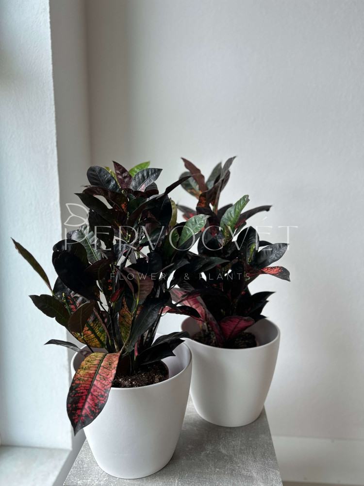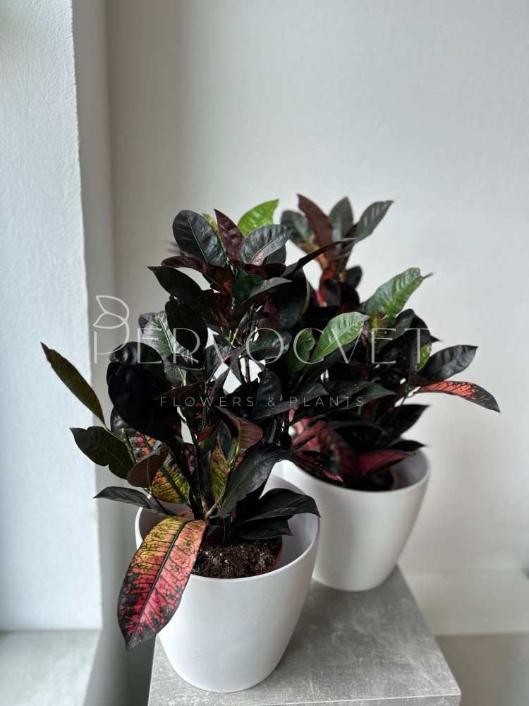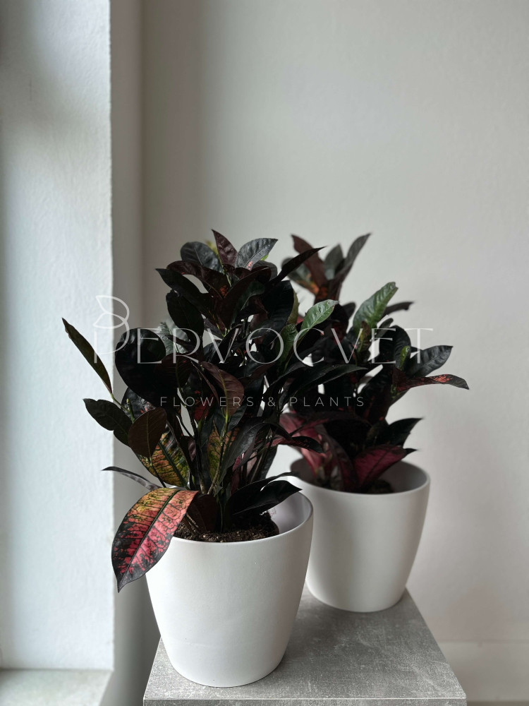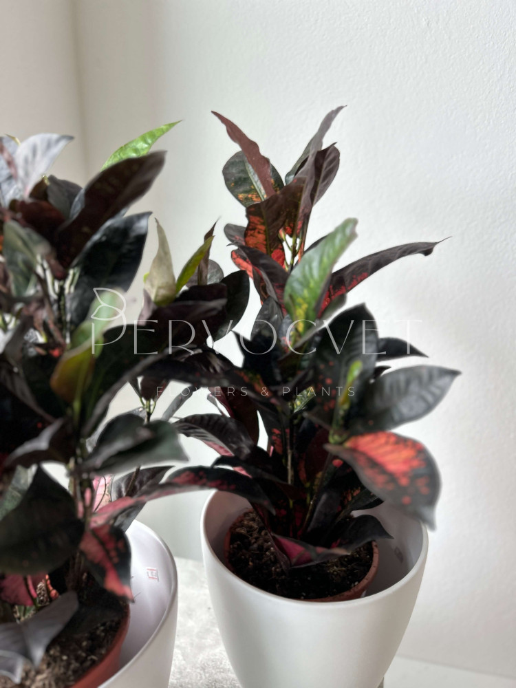 Кодиеум (Кротон) - вечнозеленый кустарник семейства Молочайных. При благоприятны условиях кротон вырастает в дерево и может достигать в высоту 4 метров. Влаголюбивое, но неприхотливое растение, украсит как офис, так и квартиру. Сорт Айстон, или Миссис Айстон, отличается особенной светолюбивостью благодаря пышной кроне разноцветных листьев, и относится к особенно высокодекоративным кротонам. Больше про уход читайте ниже.
