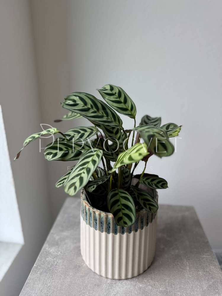 Ктенанта - тропическая культура с декоративными листьями и необычным рисунком. Растению требуется организованный уход ! Сорт Бурле Маркси отличается компактным ростом, часто его путают с калатеей или марантой, но это из-за того, что они принадлежат одному семейству. Цветение происходит в домашних условиях редко, но ценится растение за декоративность и пятнистую окраску листвы.