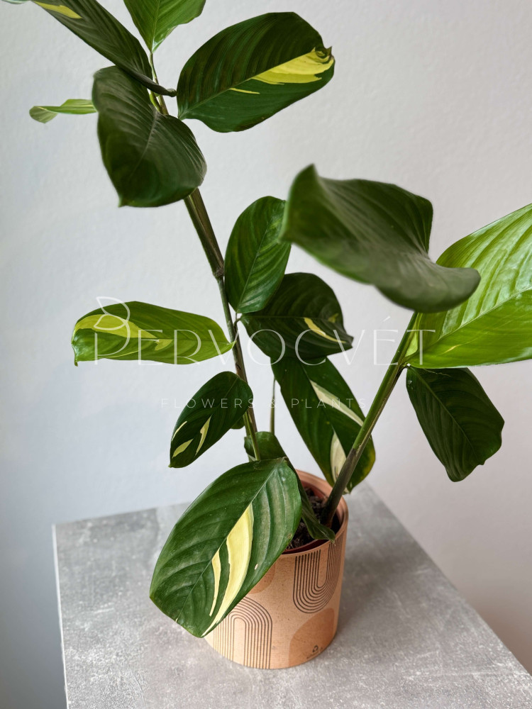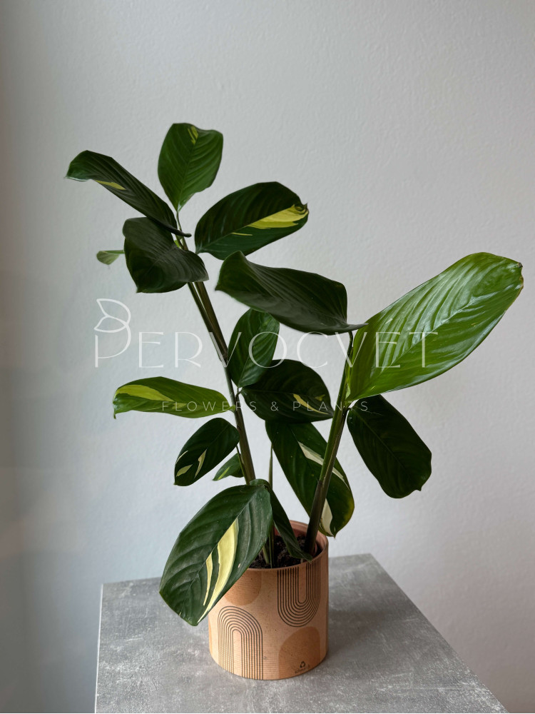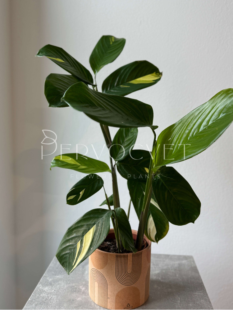 Ктенанта - тропическая культура с декоративными листьями и необычным рисунком. Растению требуется организованный уход ! Сорт Голден Мозаик отличается кремовой вариегатностью на овальных вытянутых листьях, растение гибрид ктенанты Лубберса. Требовательное к уровню влажности и поливу (подробнее про уход читайте ниже), компактное - не более 80 см.