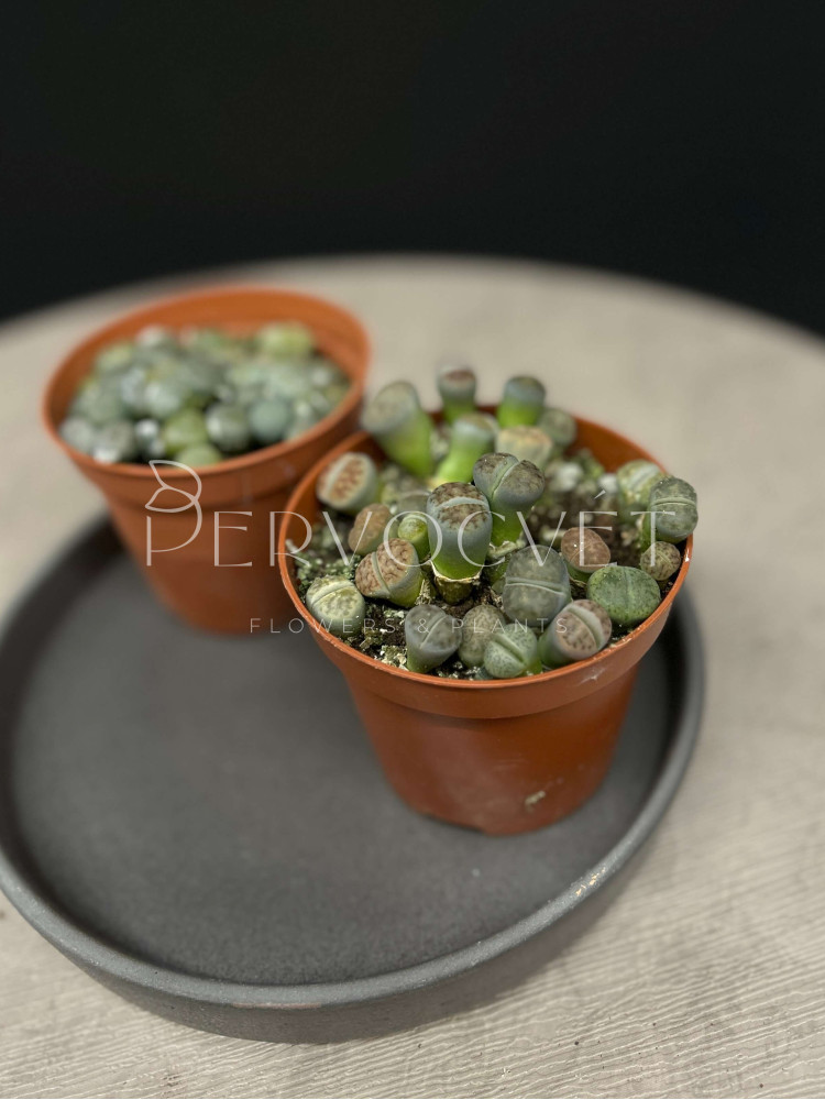 Литопсы, или живые камни - суккуленты семейства Аизовые, удивительные растения действительно почти незаметны на фоне камней (гальки). Экзотические растения не превышают 3-4 см в высоту. Парные мясистые листья могут быть окрашены от зеленого до бурого цвета (окраска варьируется от освещения и цвета грунта), часто с узором. Каждую весну старые листики заменяются новыми. Ромашковые цветочки, 2-4 см в диаметре, закладываются в конце лета и цветут на протяжении 10 дней. Цветут экзоты в возрасте 3-4 лет ежедневно, и способны прожить 15-18 лет.