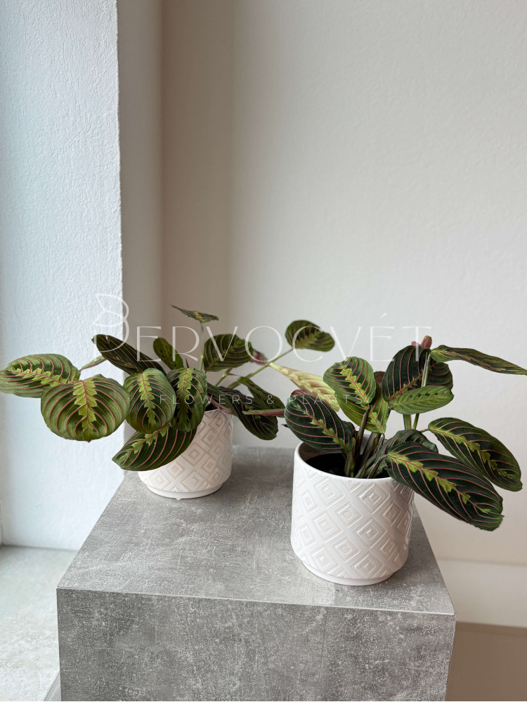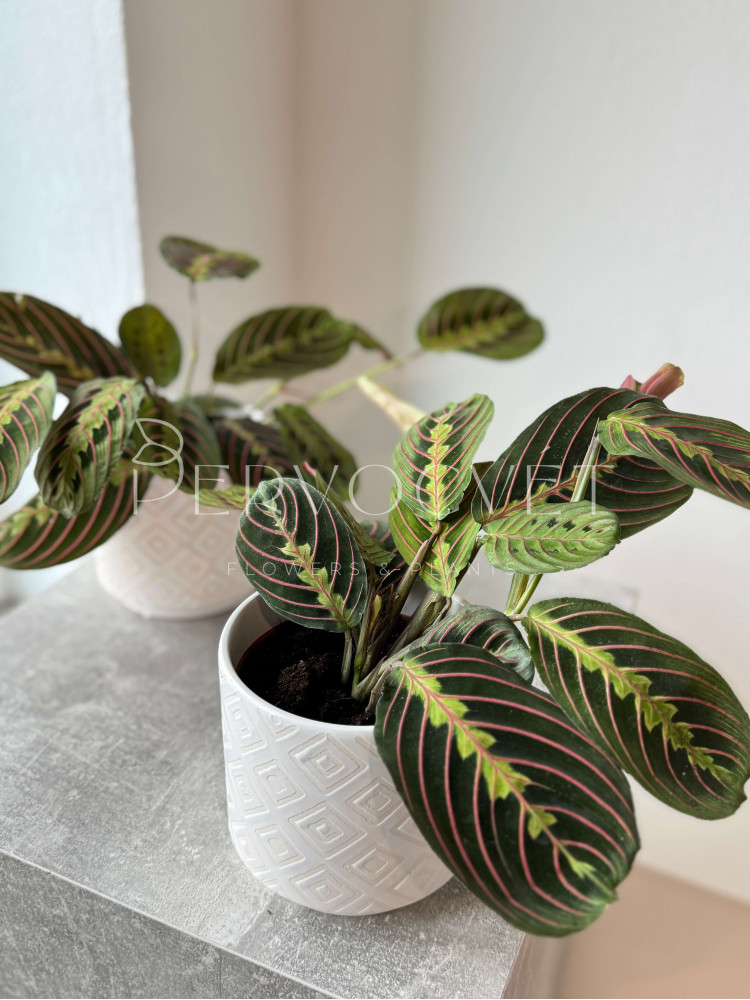 Маранта - представитель семейства Марантовые, названного в честь Венецианского медика Барталомео Маранты. В природе встречается на болотистых местностях Центральной и Южной Америки. Выращивается в качестве декоративно-лиственного растения, форма ее листвы варьируется от овально-круглой до линейно-вытянутой, окрашена в зеленый цвет с ярко-розовым узором, нижняя часть листвы бордовая.
