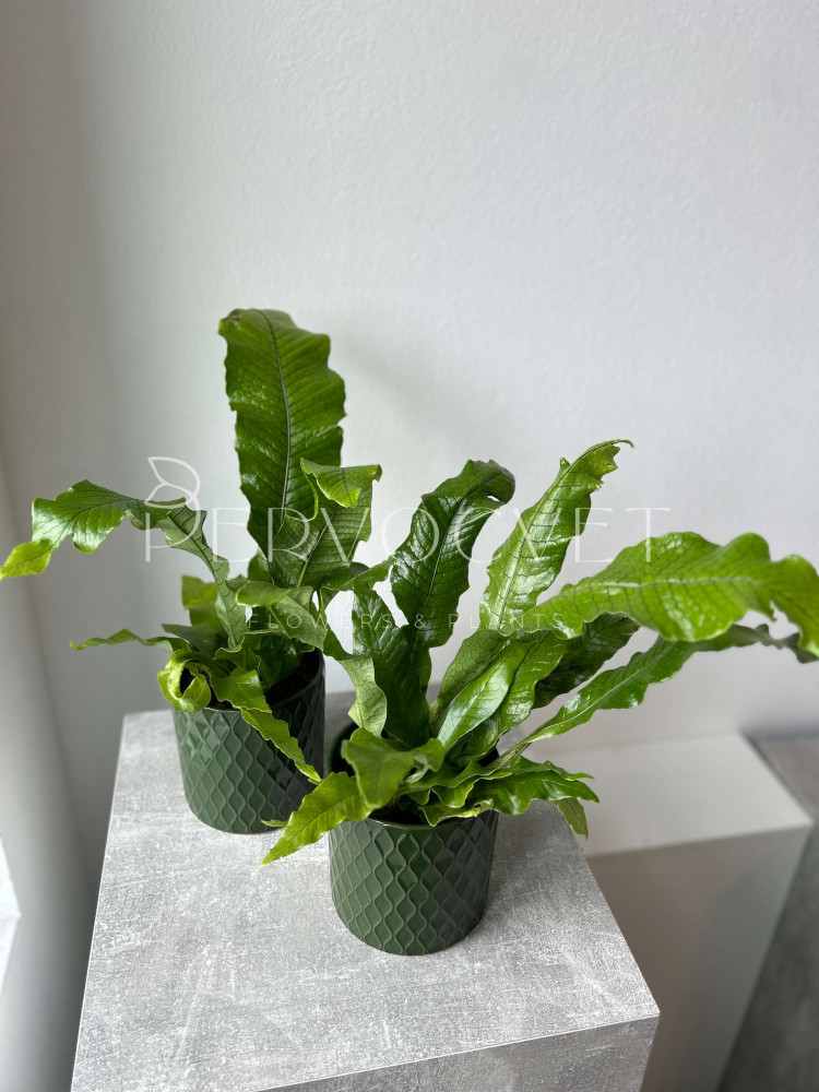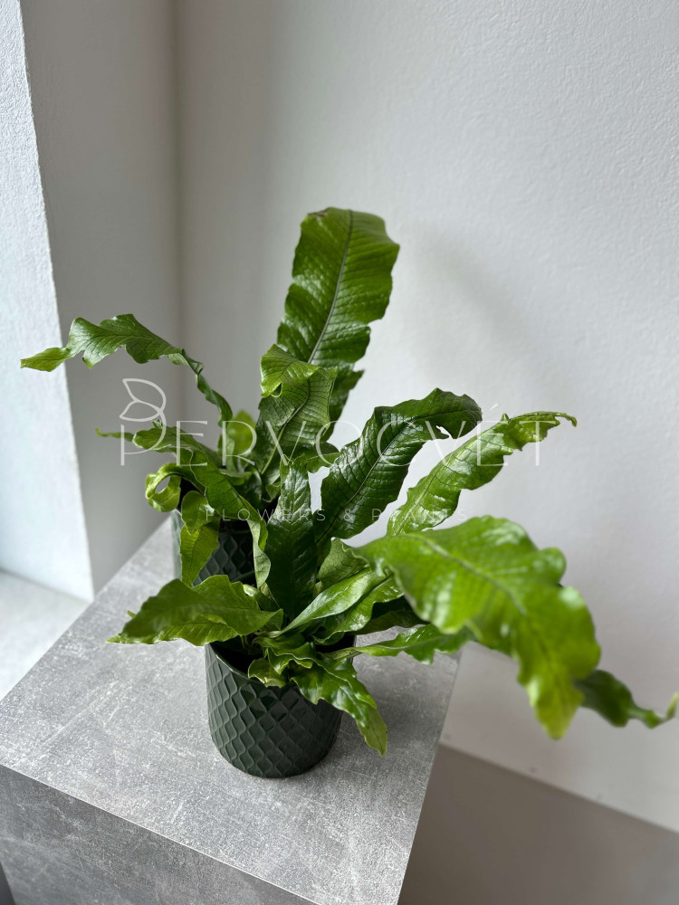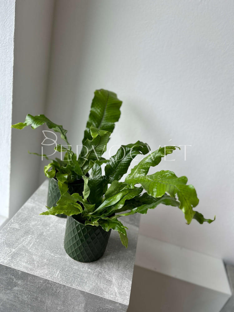 Микросорум - это пример "папоротника-оригинала", лучший кандидат для озеленения уютных рабочих зон, детских и жилых комнат, даже кухонь и ванных. Растут микросорумы очень быстро. Необычный, волнистый и пышный папоротник - очень неприхотливое растение, обладающее быстрым и ампельным ростом. Сорт Крокодил отличается "крокодиловым" узором, словно чешуя, а не листья, разрастается до 50 см в высоту. По всей поверхности листа отлично видны жилки и образуется рисунок. По мере роста листья меняются, становятся более кучерявыми и эффектными. Данное растение редкое, а ухаживать за ним просто (про уход читайте ниже).