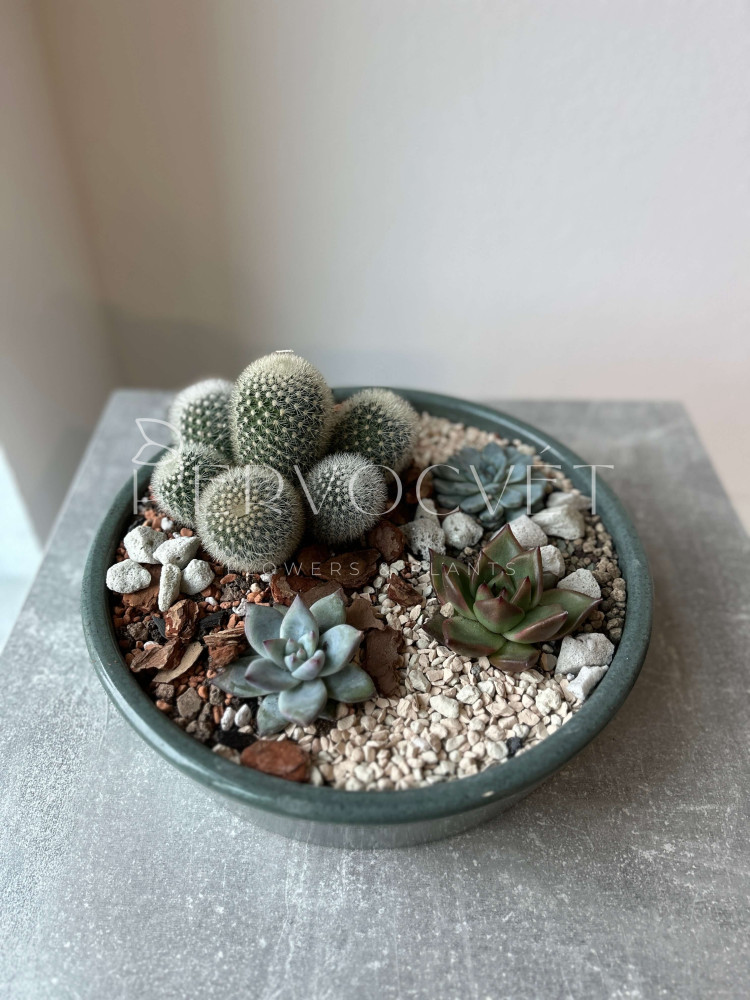 - Растения пересажены в профессиональный грунт, композиции требуется обычный уход за растениями (полив, освещение, тд.)