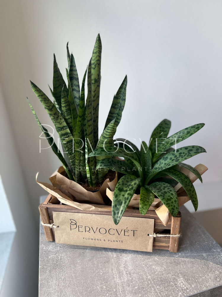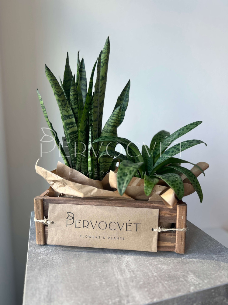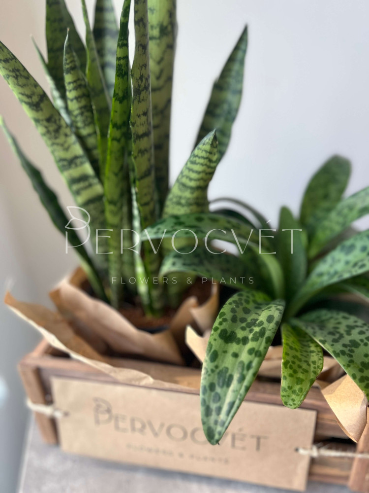 Растения: Дримиопсис Макулата, Сансевиерия Джейд 40 см
