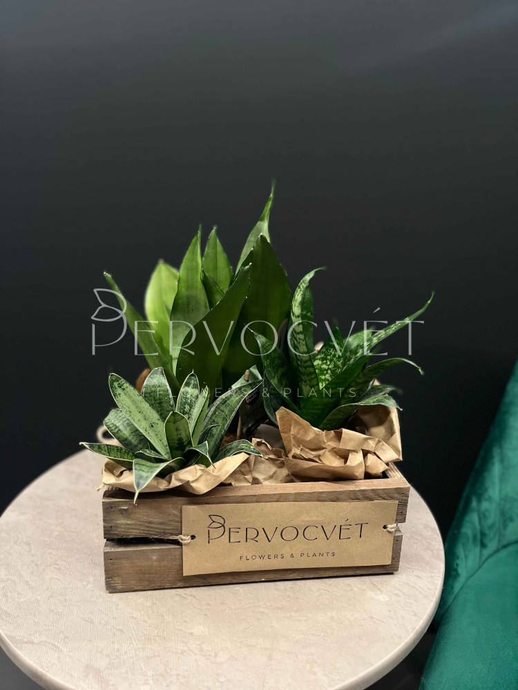 Растения: Сансевиерия Муншайн 40 см, Сансевиерия Ханни 20 см, Сансевиерия Ханни 30 см