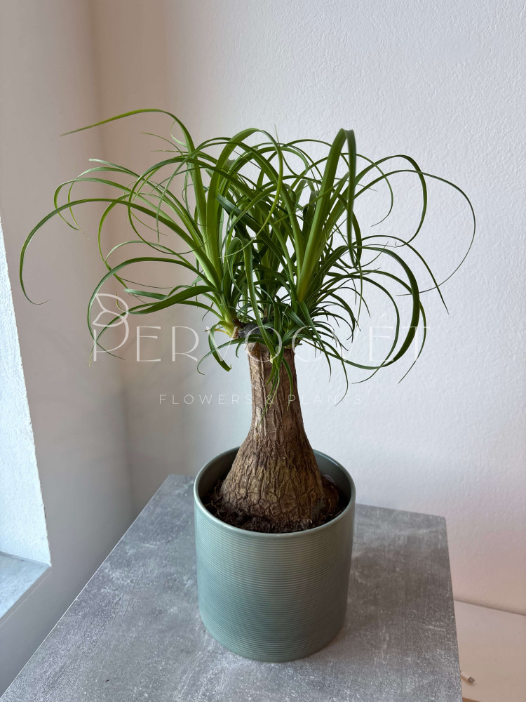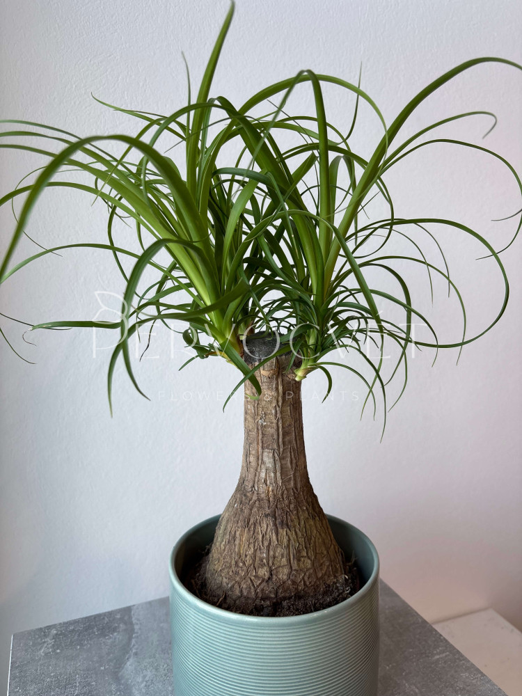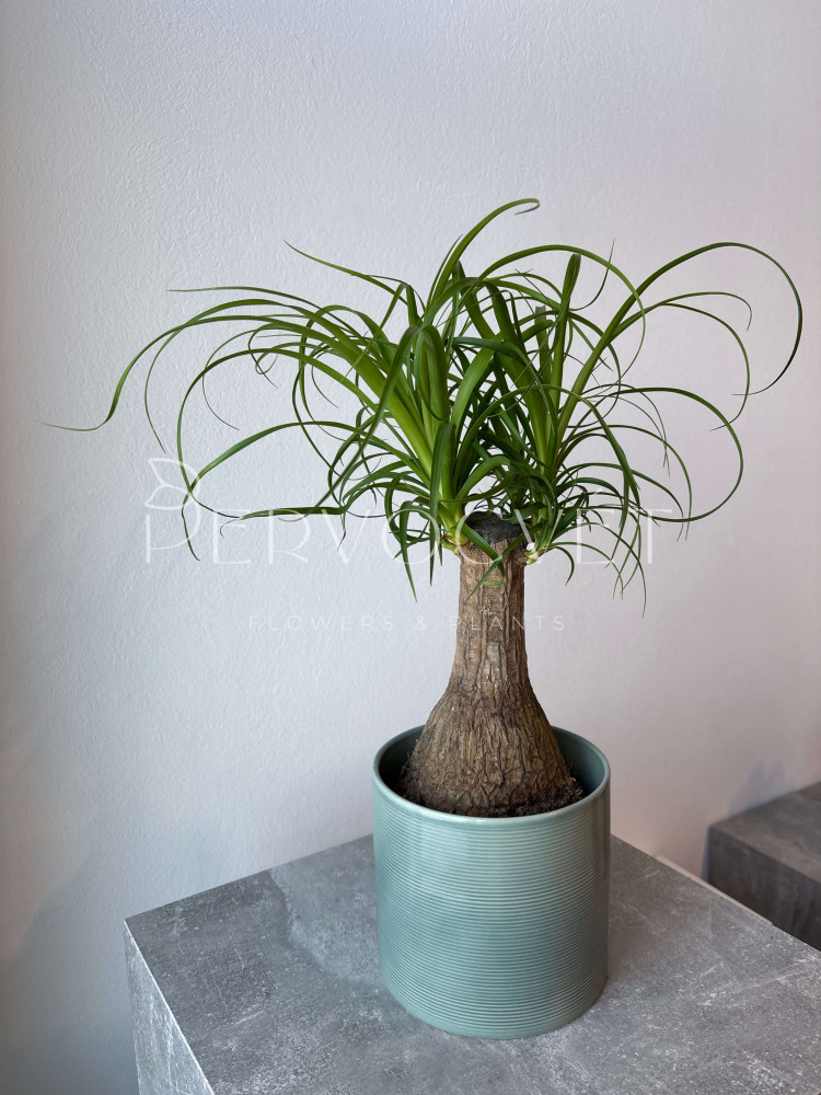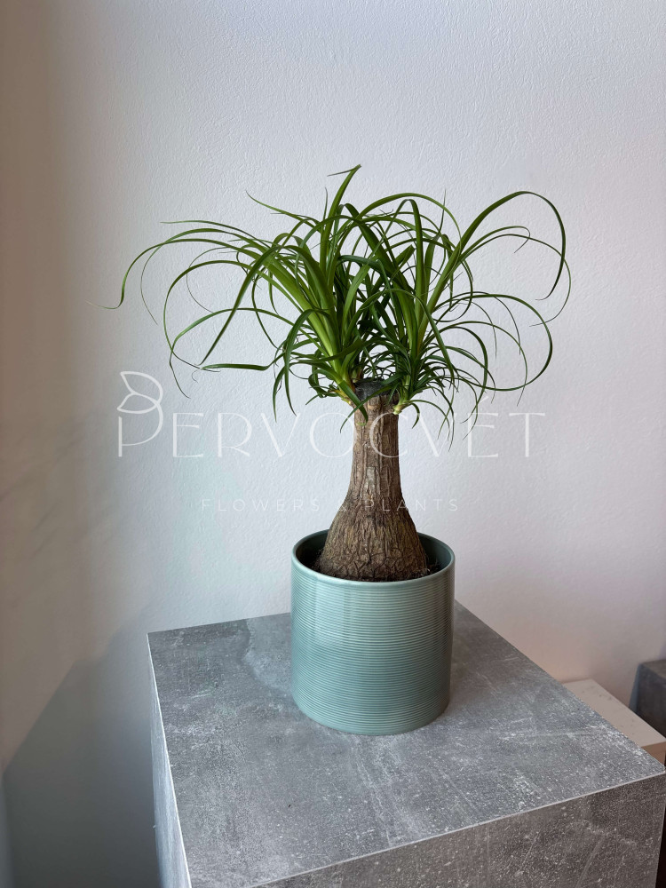 Нолина - представитель семейства Агавовые, ботаническое название которого - Бокарнея, родина - Мексика. Общеизвестное название - лошадиный хвост, из-за формы и размещения листовых пластин. Комнатная нолина - невысокий кустарник с бутылочным стволом, напоминающим Пахиру, в котором накапливается вода (для засушливых периодов). При этом благодаря тонкости листьев влага испаряется медленно. Неприхотливо в уходе, подойдет и украсит любой интерьер - про уход читайте ниже.