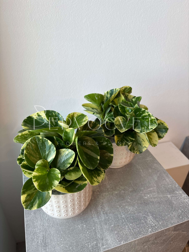 Пеперомия Обтипан - популярный, но редкий сорт Пеперомий. Мясистый лист, округлый с кремово-зеленой вариегатностью. Сорт компактный до 30 см, часто прямостоячий, редко формируется в ампель. Неприхотливое растение, подойдет даже для новичка. Подробности ухода ниже.