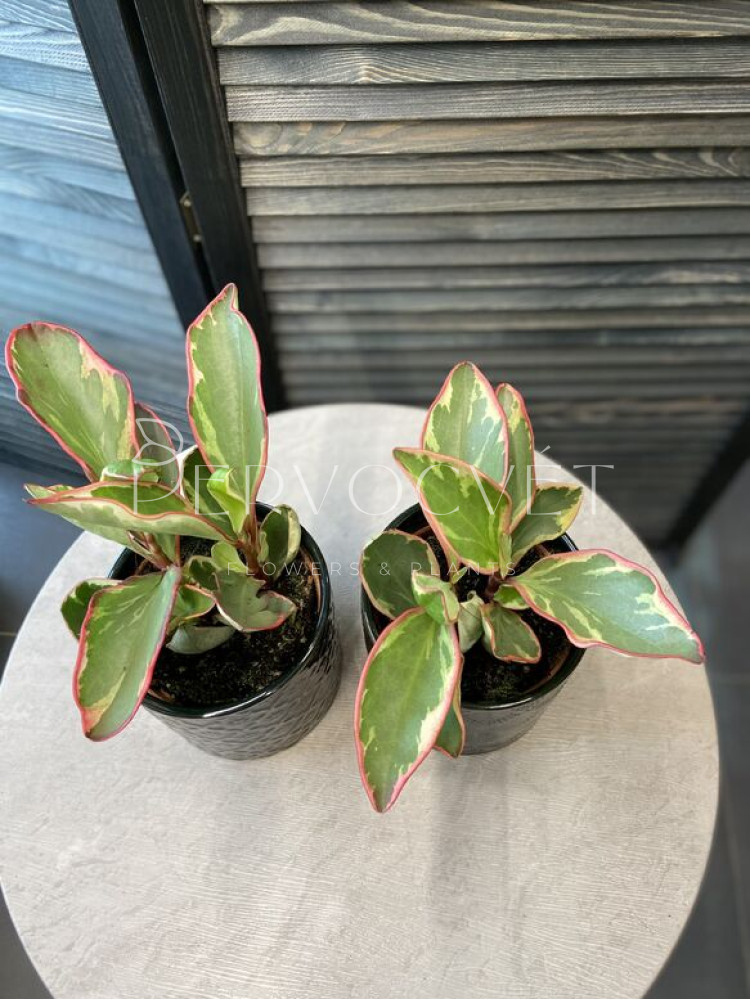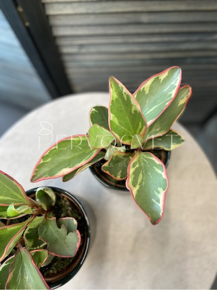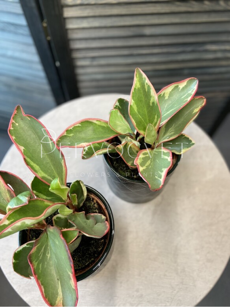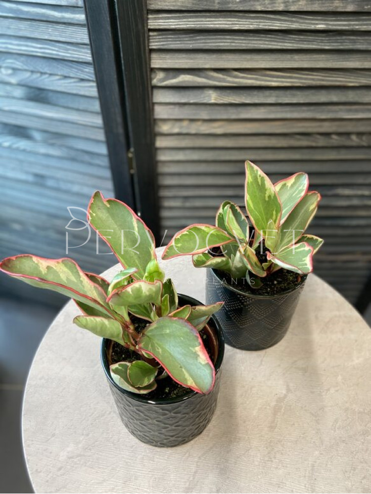 Пеперомия Джелли - сорт Пеперомий, отличающийся крупными листьями с розовым подпалом. Листья находятся в нижних узлах и формируют крону, цвет листвы от светло- до тёмно-зелёного.