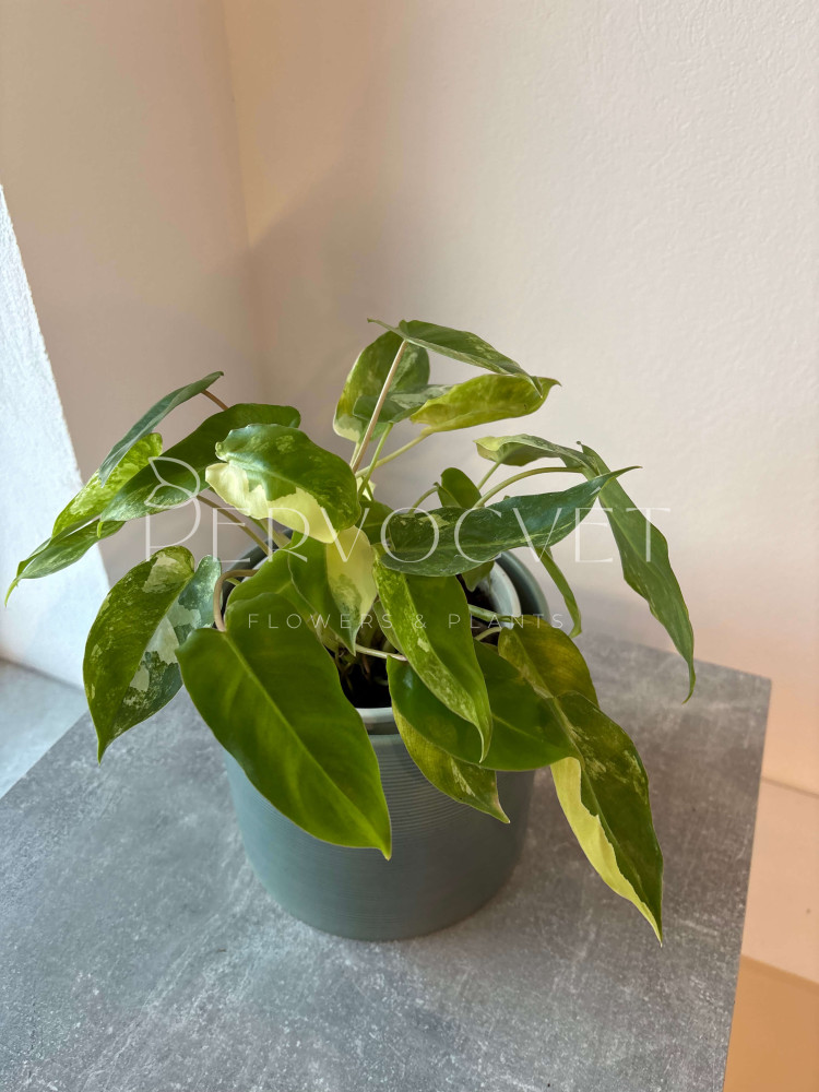 Филодендрон Бурле Маркс Вариегатный - искусственно выведеный гибридный сорт Филодендронов. В домашний условиях обычно растение компактное до 90 см в высоту, лианоподобная - может понадобиться опора для выращивания. Ценится за красивую кремово-зеленую вариегатность. Родина растения - тропики, поэтому оно требовательно к условиям и уходу. Описание по уходу читайте ниже.