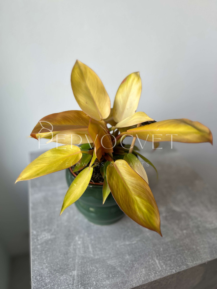 Филодендрон Принц Оранж - высокодекоративное оригинальное комнатное растение, цвет листьев которого абсолютно уникален. Филодендроны популярны во всем мире, а цвет листьев Принц Оранж переливается от персикового до темно-оранжевого и зеленого - настоящая редкость и акцент в интерьер. Описание по уходу читайте ниже.