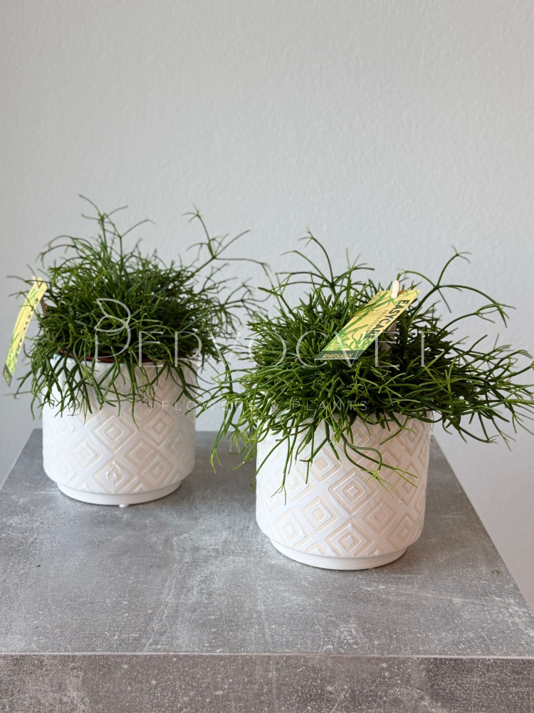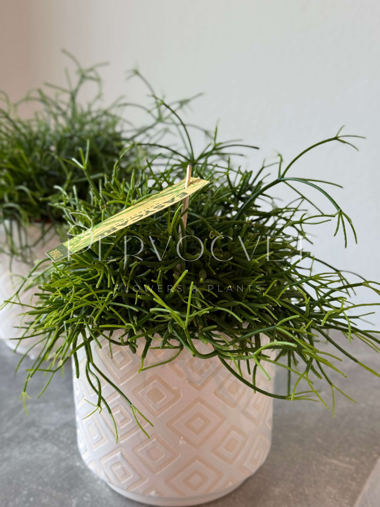 Рипсалис - уникальное суккулентное растение, принадлежащее к семейству эпифитных кактусов. Обладает множеством тонких побегов, состоящих из узких сегментов различной формы. Рипсалисы бывают сплющенные, ребристые, цилиндрические и другие. Рипсалис можно выращивать как ампель: побеги свисают образуя каскад. Цветение происходит в октябре-апреле маленькими белыми, или чаще, желтыми цветками.