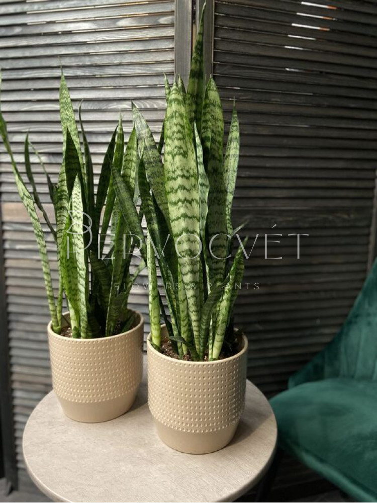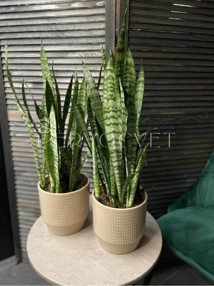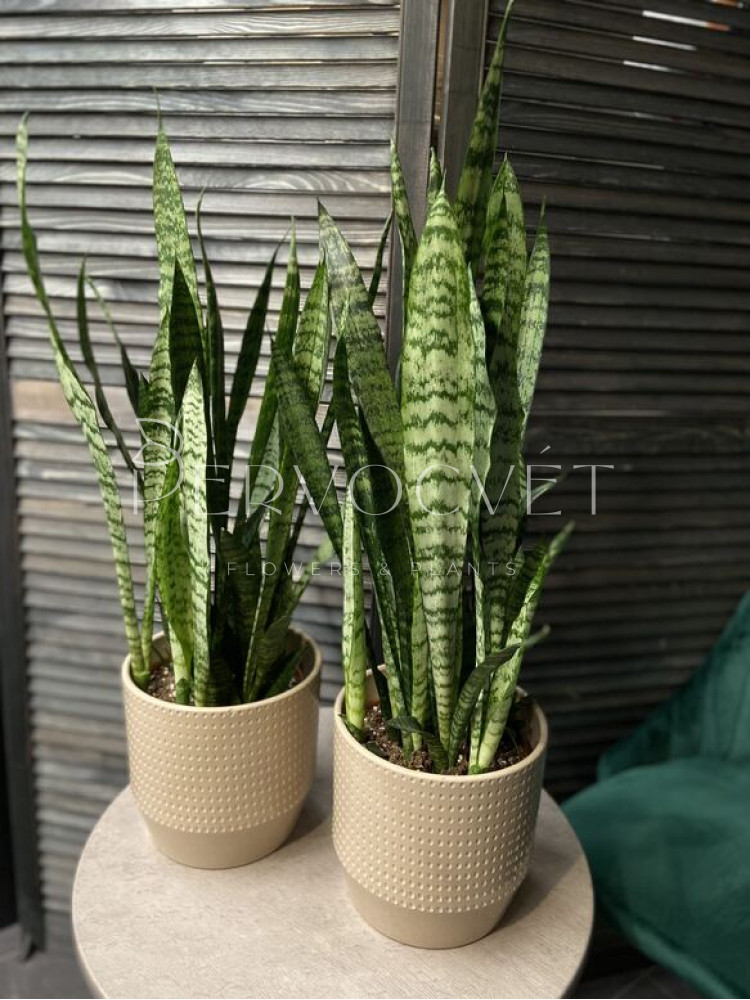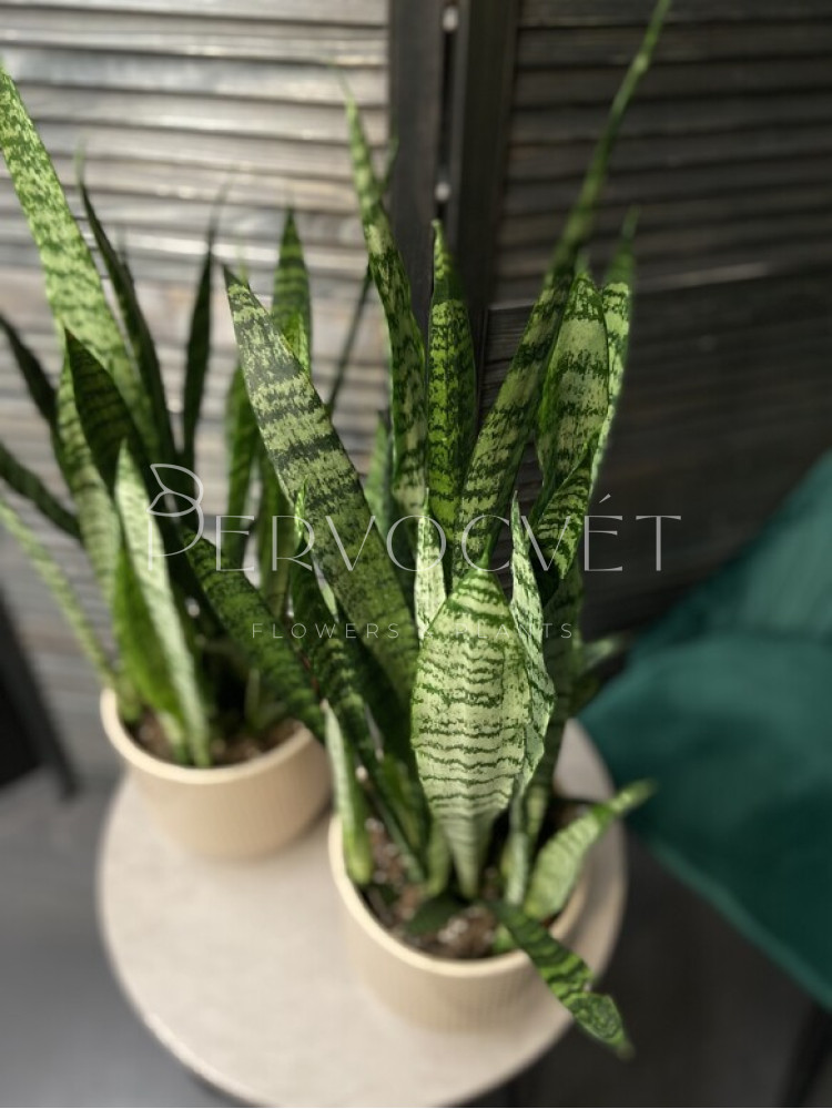 Сансевиерия Джейд - классическая трёхполосная версия Сансевиерий. Неприхотливое растение, в т.ч. цветет чаще чем другие сорта. Именно благодаря этому сорту Сансевиерии известны всем как "щучий хвост".