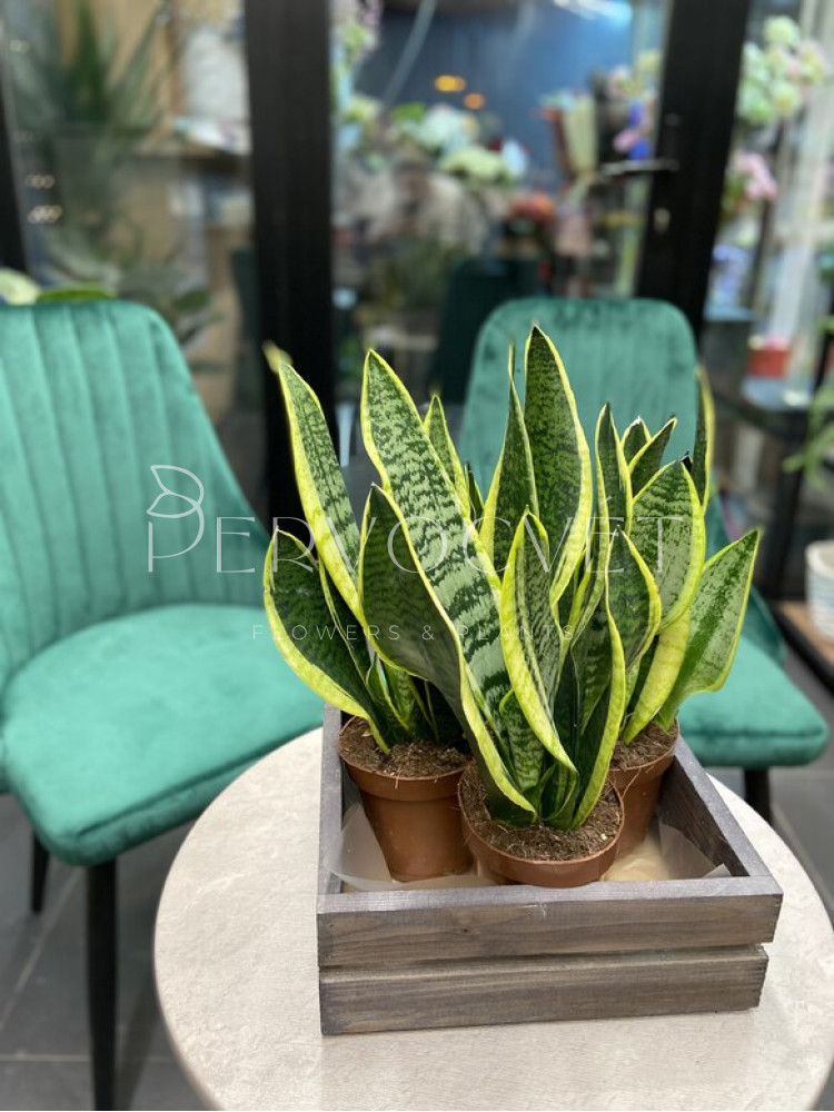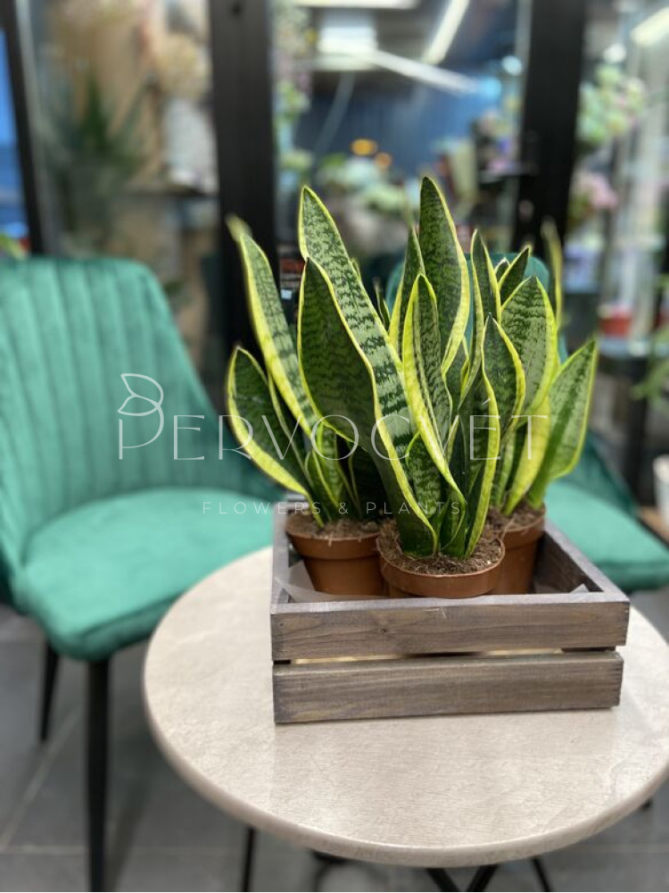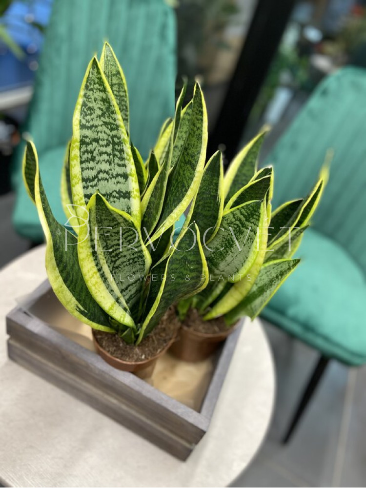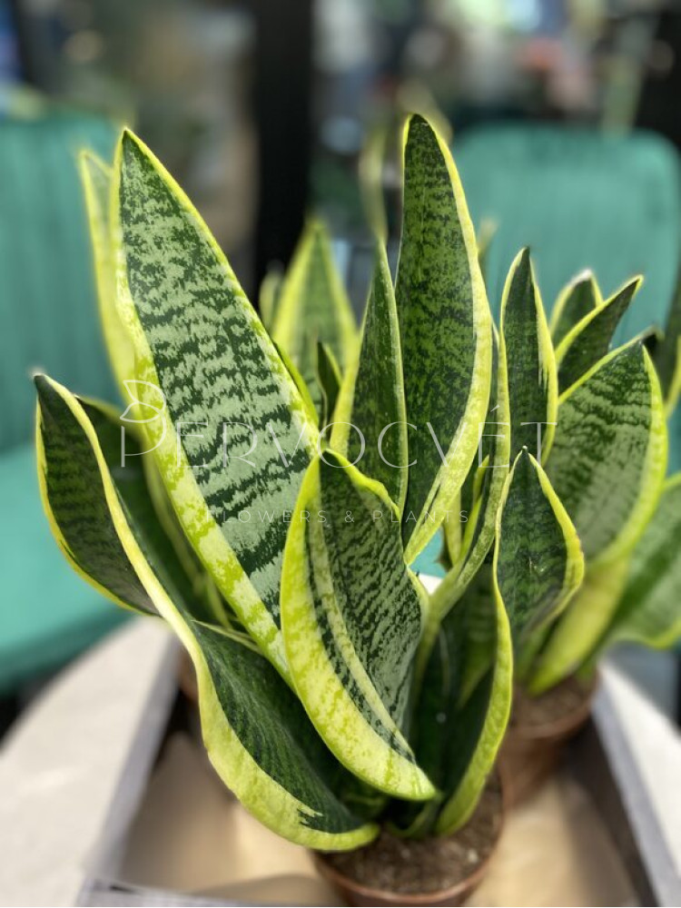 Сансевиерия Лауренти Компакта - неприхотливое растение, известное всем под названиями "щучий хвост" и "тещин язык". Существует несколько типов, видов и сортов сансевиерий. Трехполосная Сансевиерия Лауренти стала основой для нескольких разновидностей, в т.ч. для сорта Компакта, который отличается меньшими по высоте, но более крупными листьями, которые красиво выгибаются наружу.