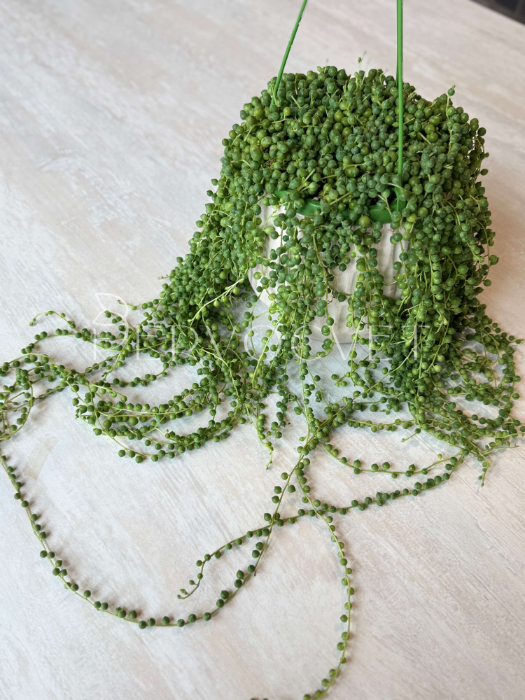Сенецио Роули, или Крестовник - самый узнаваемый и экстравагантный суккулент, напоминающий зеленый горошек. Вечнозеленый, быстрорастущий ампель, хрупкий с особенно длинными побегами и необычными сферическими листьями. Растения достигают 1 м в длину, укореняются побеги в любых местах, где контактируют с почвой.