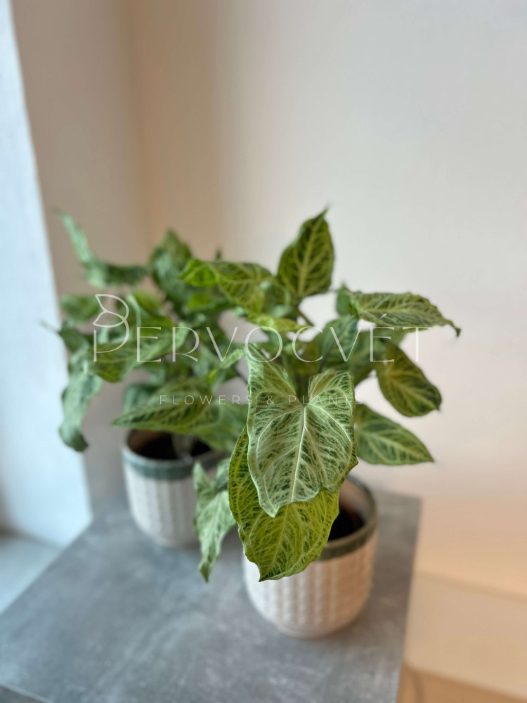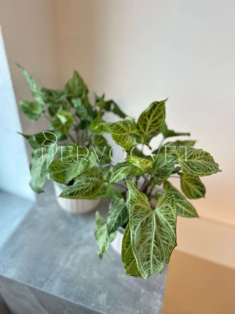 Сингониум - представитель семейства Ароидные. Представляет собой травянистую лиану, обладает воздушными корнями и тонкими побегами. Сингониум является родственником растения Филодендрон. Сорт Батик отличается рисунком мелкой паутинки прожилок белого цвета. Листовые пластины имеют стреловидную форму С возрастом рассечение увеличивается. Для роста растение нужно будет обзавестись опорами. Растение неприхотливое и часто культивируется как ампель. Про уход читайте ниже.
