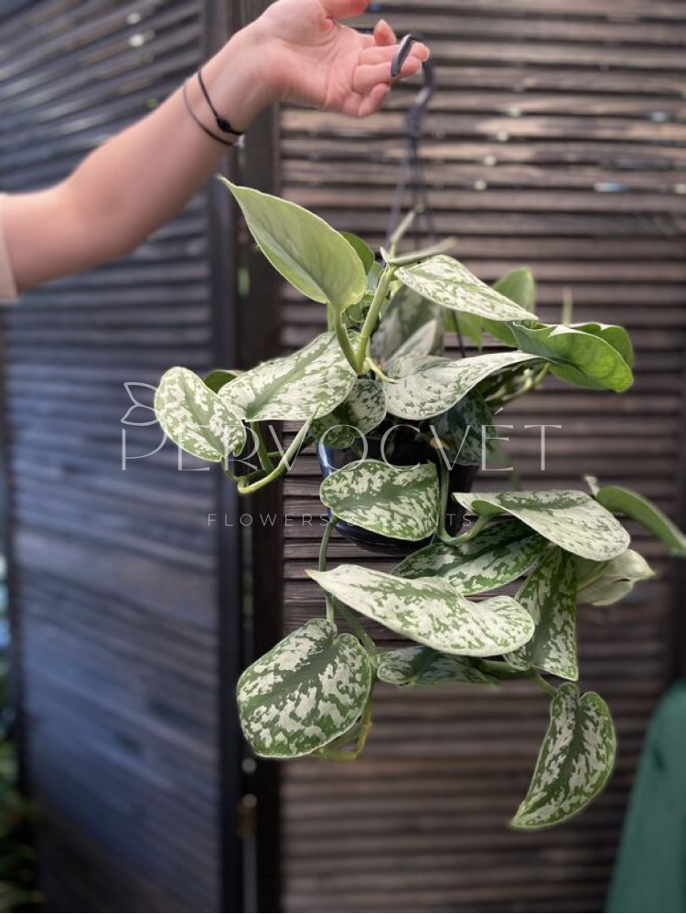 Сциндапсус Треби - лиана тропических лесов, неприхотливое эффектное растение. Листья имеют характерный рисунок, растение нуждается в опоре, иначе оно переходит в красивый ампель.