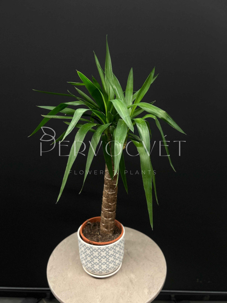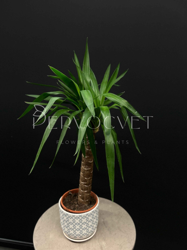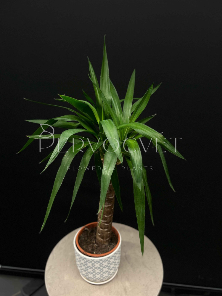 Юкка - растение полупустынных засушливых районов, имеет толстый одревесневший ствол и розетки сочных листьев на макушке. Легко переносит недостаток воды на протяжении долгого времени. Благодаря схожестью с пальмами придаст интерьеру помещения атмосферу отдыха.