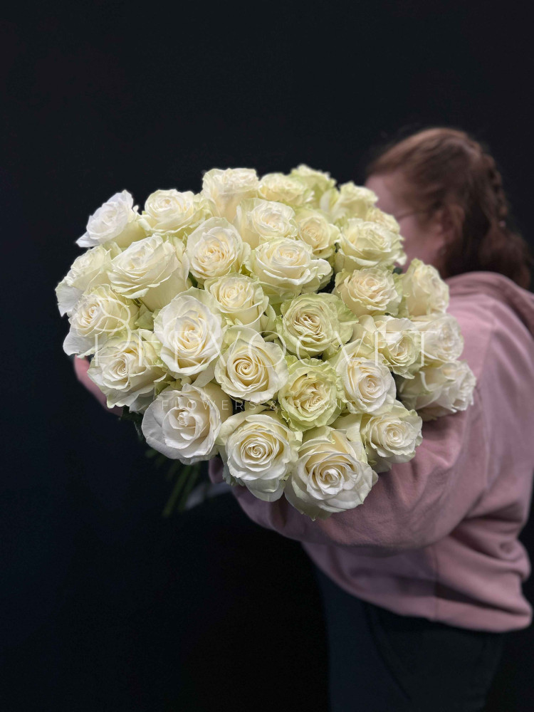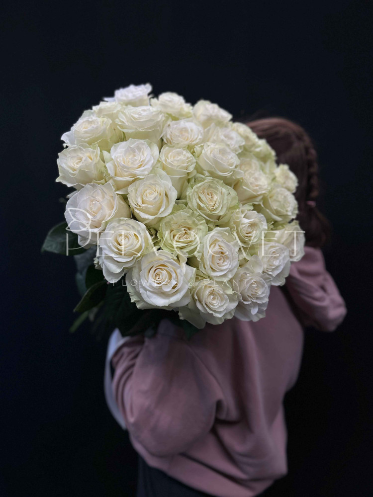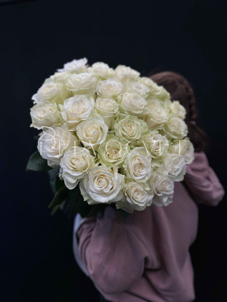 Букет из белых Эквадорских роз. Классический букет для важного повода или мероприятия!