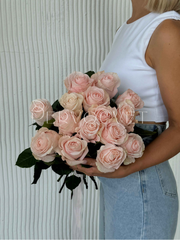 Классическая розовая роза сорта Памароса, Эквадор. Подарок, который подходит как для любимой, так и для коллеги! Букет может быть выполнен из любого оттенка роз, из ассортимента в наличии.