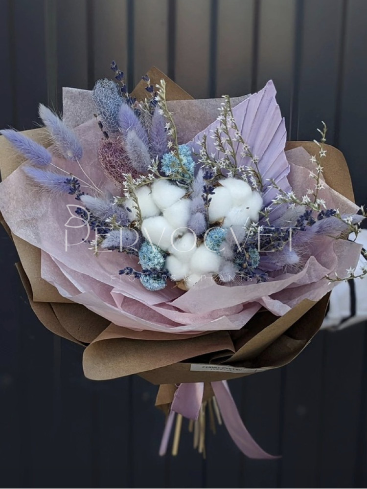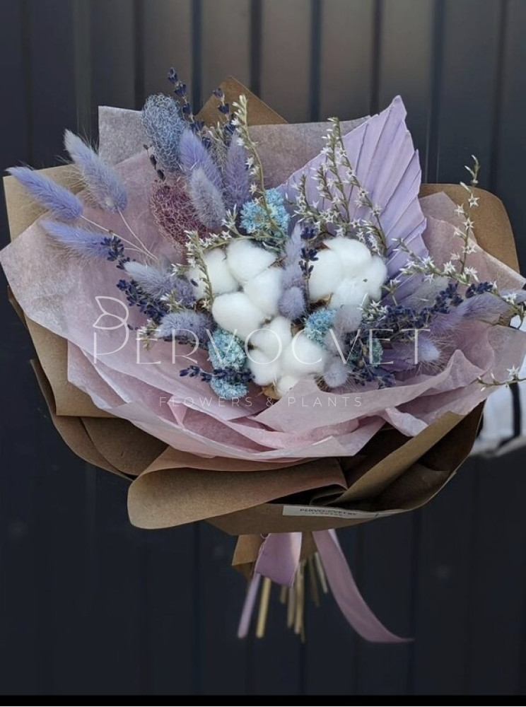 состав: хлопок, кермек, лаванда, лагурус, экбалиум, пальмовый лист, анафалис