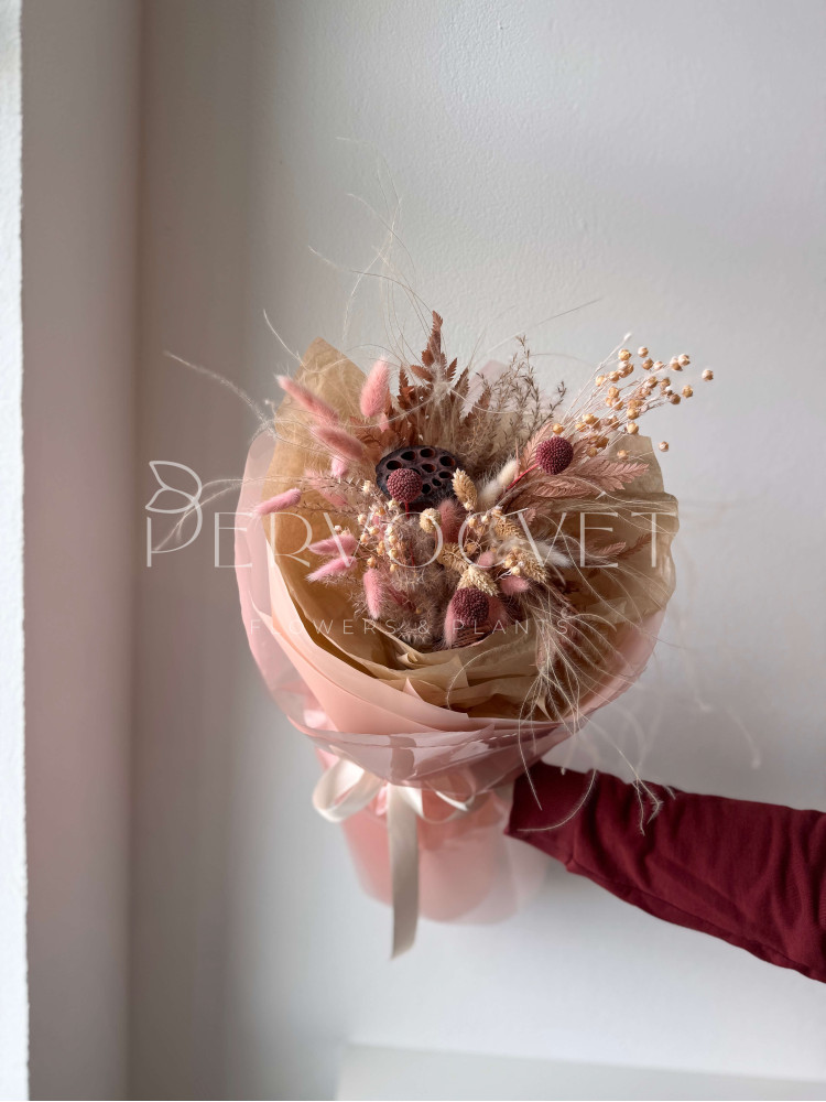 Букет в оттенках розовой пудры: нежное облако злаков и стабилизированных цветов! Вечные цветы, в нежном оттенке, которые подойдут в любой интерьер.