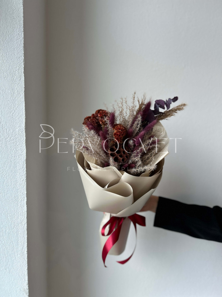 - Солнечный свет. Разместите букет (композицию) в месте без воздействия прямых солнечных лучей, палящий (яркий) солнечный свет может изменить окраску сухоцветов.