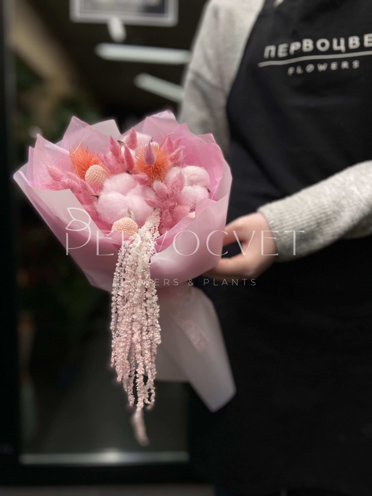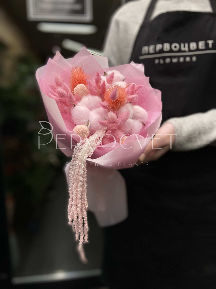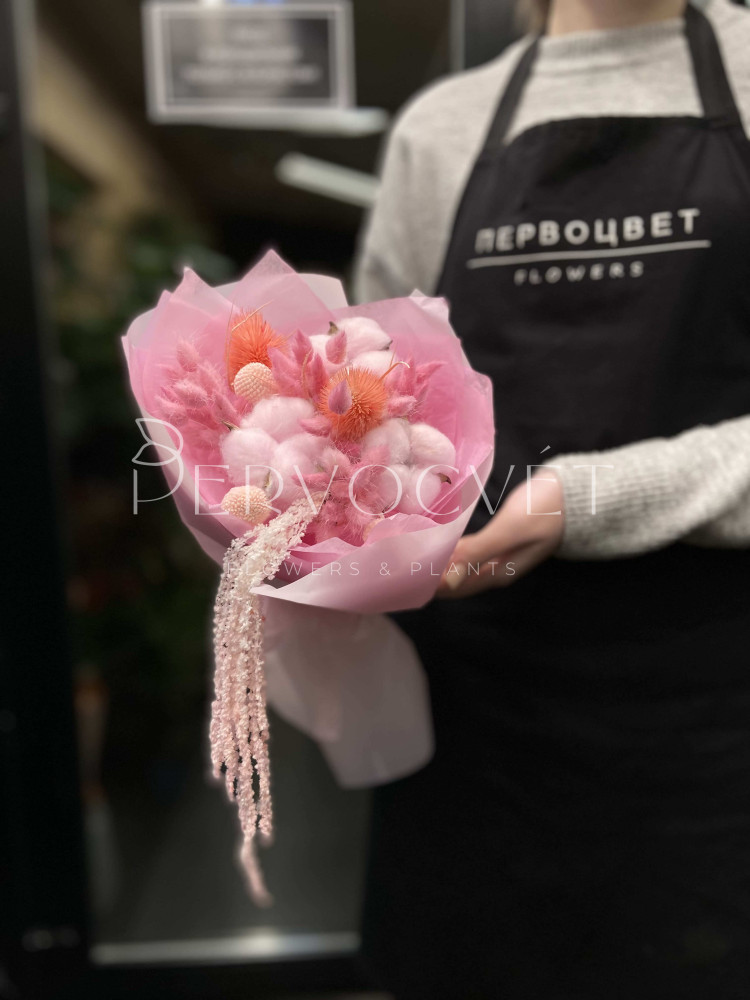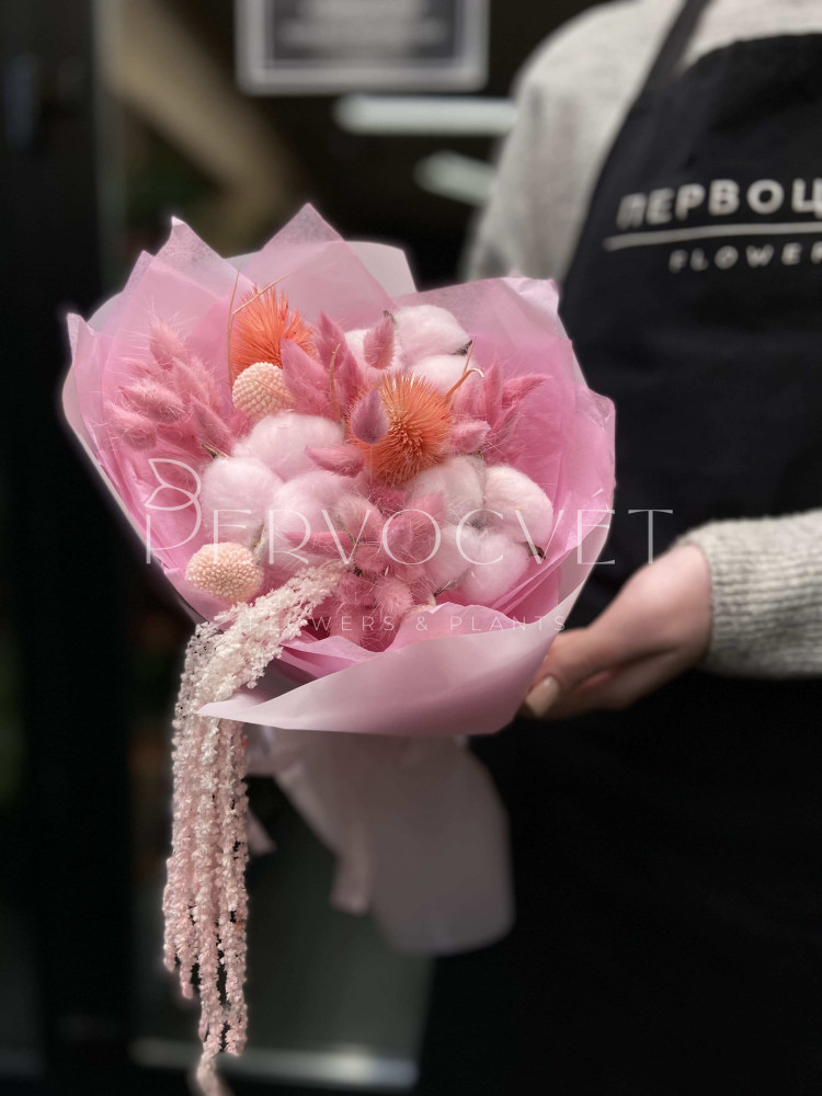 состав: кардо, хлопок, лагурус, краспедия, амарант
